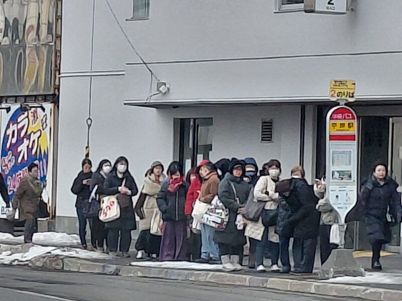 「青年よ大志を抱け!」クラーク像で有名な「羊が丘展望台行」の、平岸駅前発の通常路面バスで、札幌ドームバス停まで行く、賢い方々。